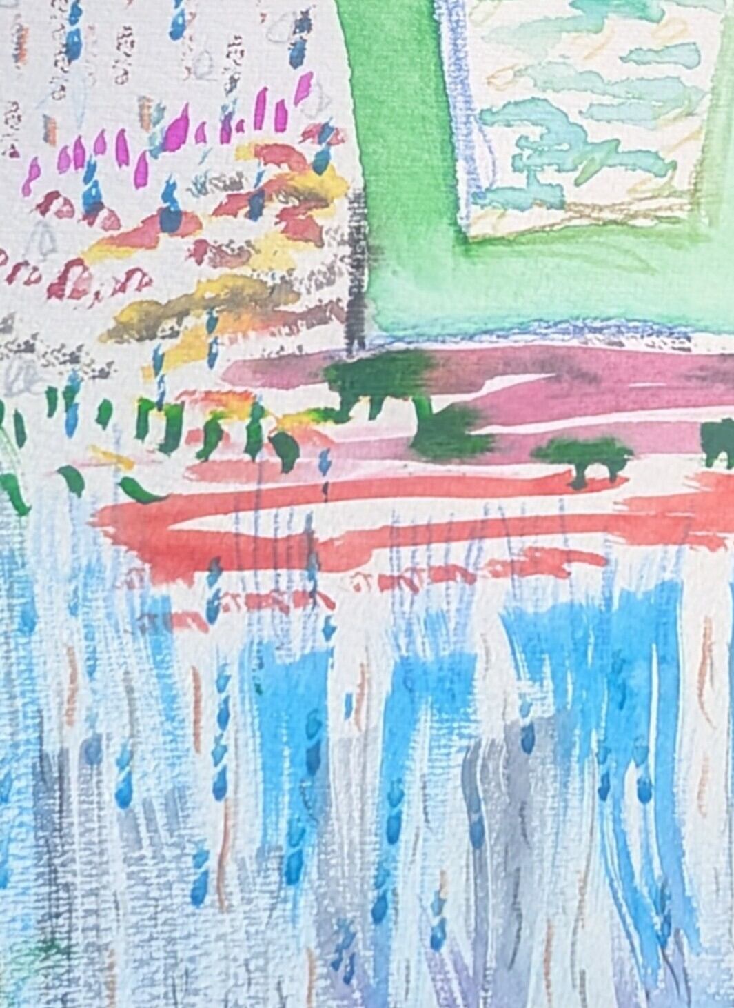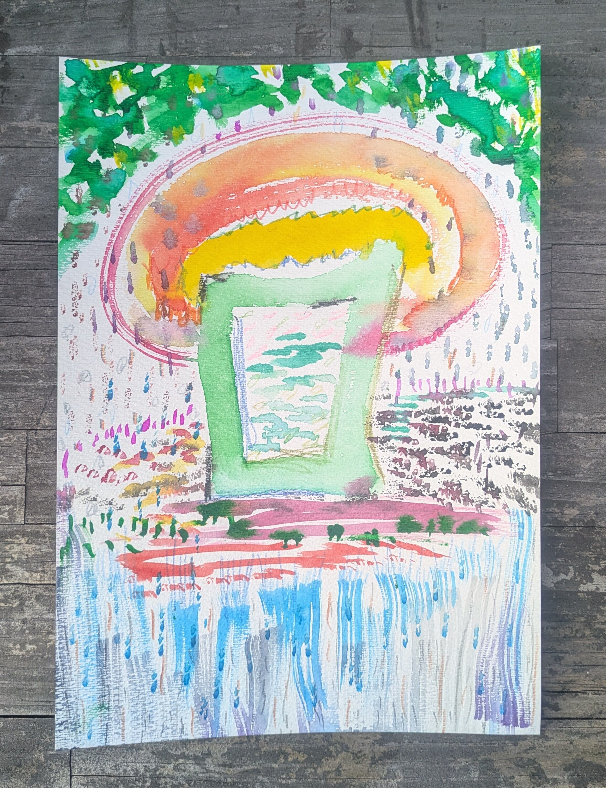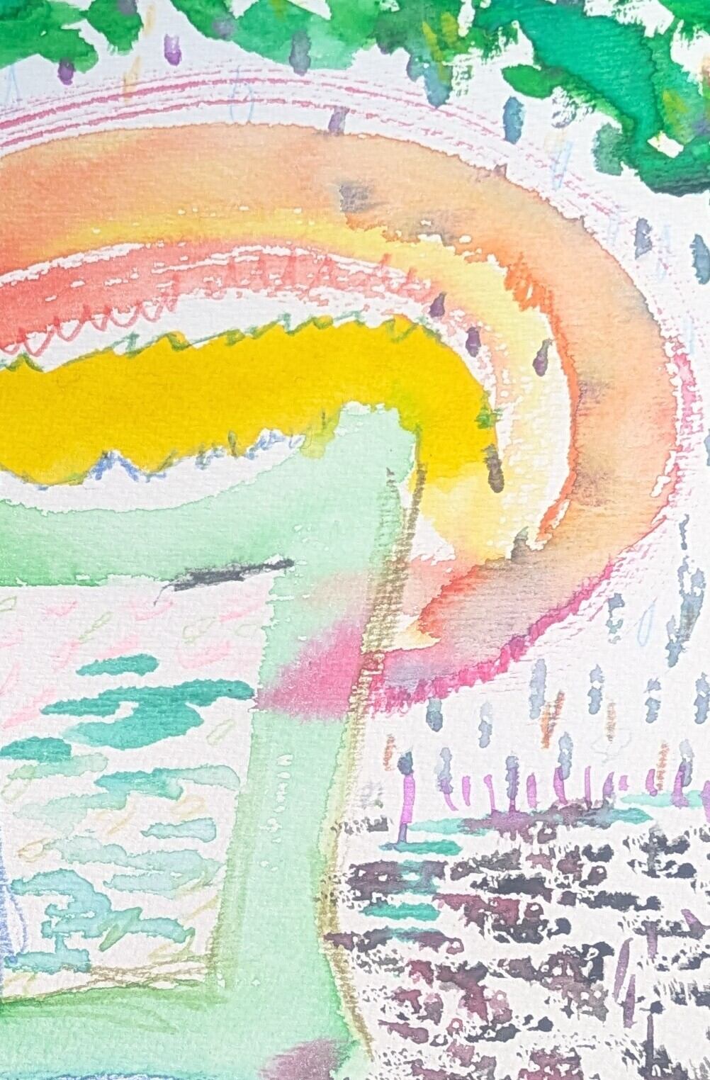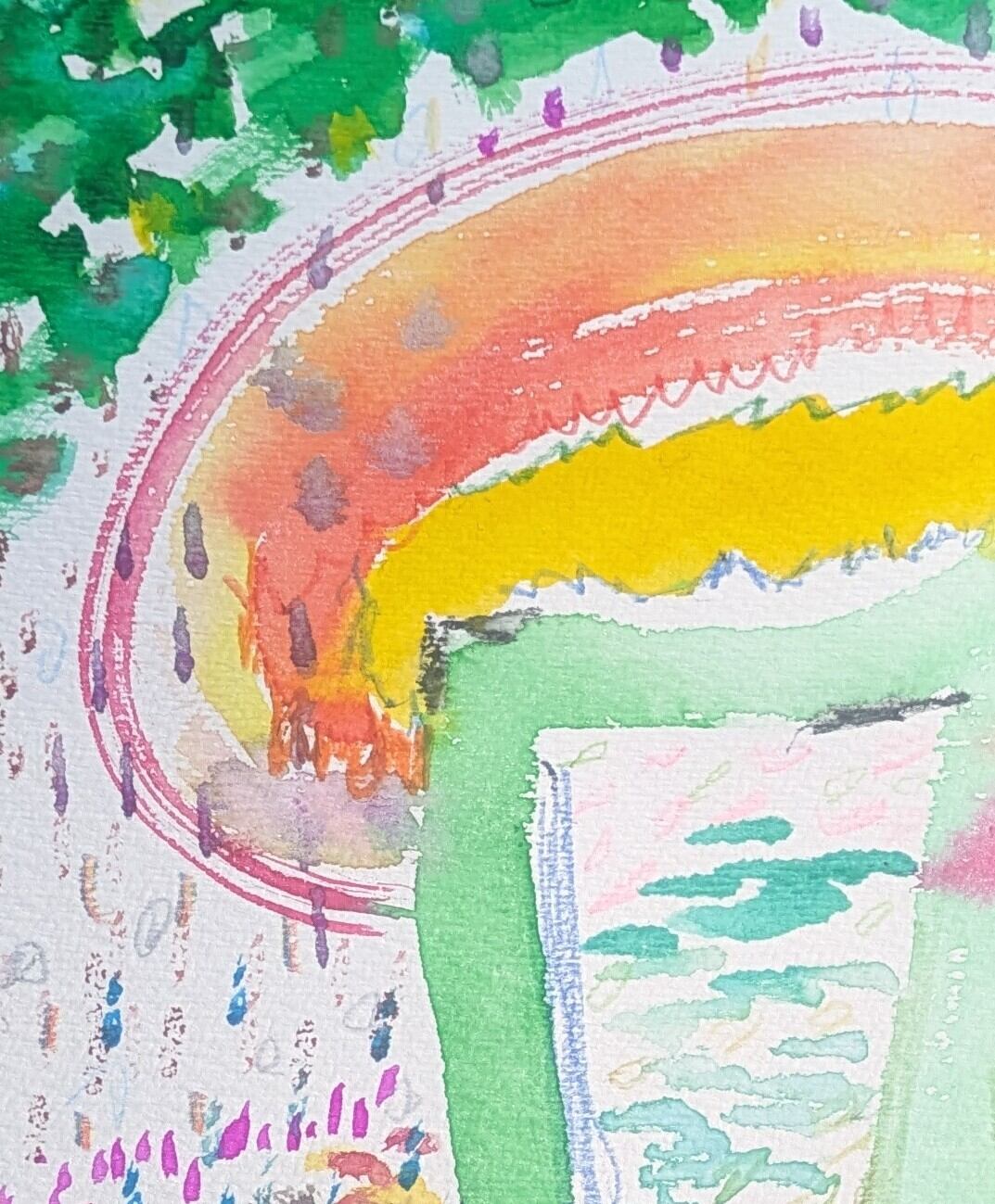 A4サイズの水彩紙に描いたミクストメディア作品です。