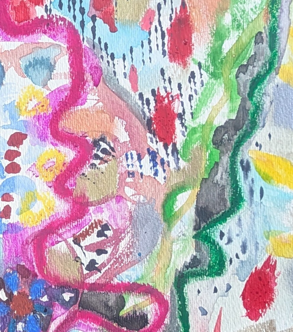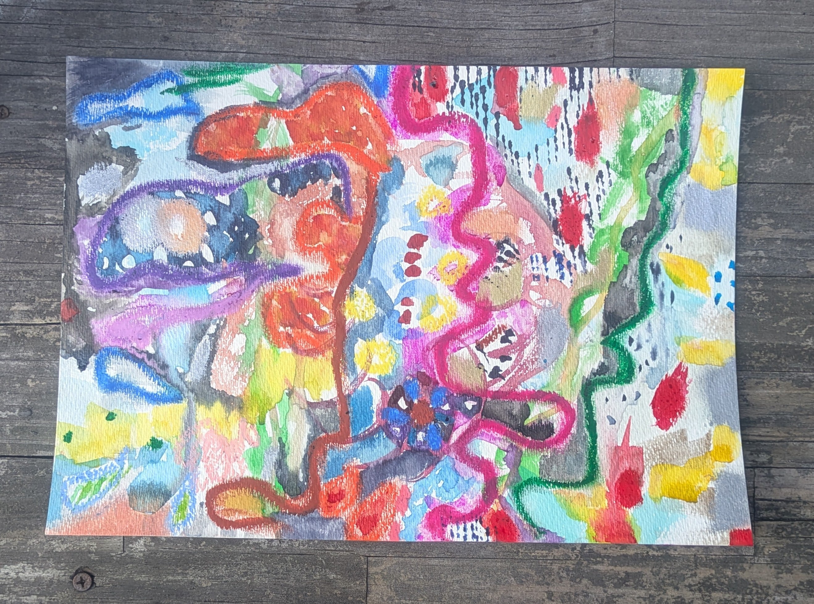 A4サイズの水彩紙に描いたミクストメディア作品です。