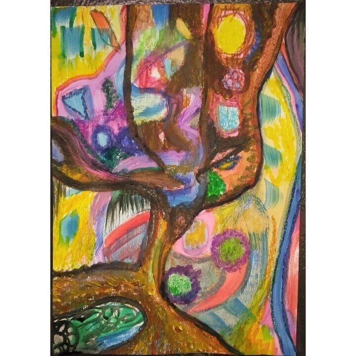 ◎A4サイズのミクスドメディア作品(アクリル絵具・オイルパステル使用)と、